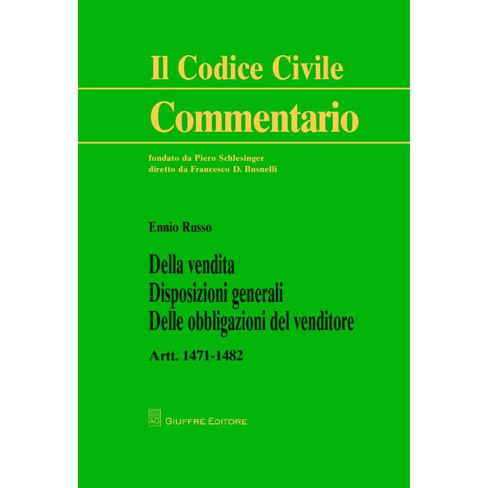 Ennio Russo con il Commentario sugli artt. 1471 - 1482 c.c. prosegue il discorso iniziato col volume sull'art. 1470 c.c. su Vendita e consenso traslativo. La disciplina posta dalla legge viene guardata in generale nelle sue radici storiche e dogmatiche e nei suoi atteggiamenti specifici. Si sottolinea la trattazione della vendita di cosa futura, della responsabilità per consegna di aliud pro alio, della responsabilità del venditore per inadempimento e per inattuazione dell'effetto reale. Resta fuori la trattazione della garanzia per evizione (artt. 1483-1489 c.c.), riservata ad un prossimo volume.