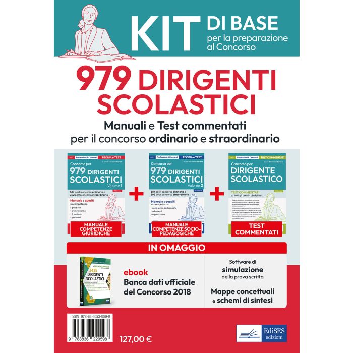 Kit completo per la preparazione a tutte le prove del concorso per Dirigente Scolastico. Il pacchetto comprende i seguenti volumi: Manuale vol. 1 - Competenze giuridiche, amministrative, finanziarie e gestionali del DS; Manuale vol. 2 - Competenze socio-pedagogiche, relazionali e organizzative del DS; Test commentati del concorso per Dirigenti Scolastici. In OMAGGIO con il kit: Ebook La banca dati ufficiale del Concorso 2018 per 2425 Dirigenti scolastici; Mappe concettuali e schemi di sintesi per il ripasso dei contenuti; Software di simulazione della prova preselettiva.