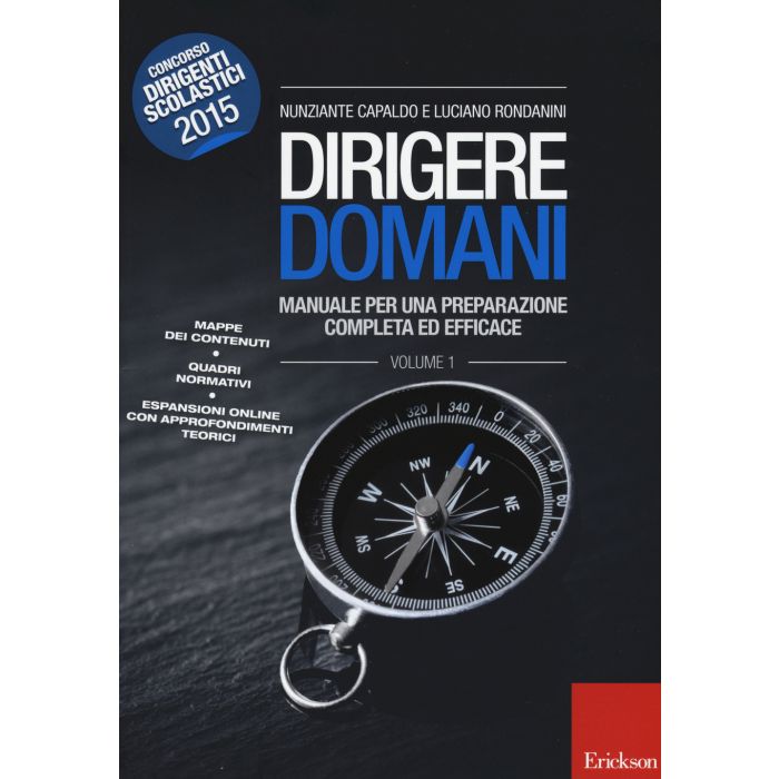 Questo volume, essenziale per una preparazione completa ed efficace al Concorso Dirigenti 2015, presenta le tematiche più significative che un futuro dirigente deve conoscere e padroneggiare per essere al passo con le rilevanti e recenti trasformazioni del sistema scolastico del nostro Paese. Delineando le linee del cambiamento in atto, il manuale vuole offrire ai futuri dirigenti scolastici uno strumento di riflessione e di azione per svolgere al meglio i compiti richiesti nell'ottica di una gestione dei processi di miglioramento. Frutto dell'esperienza dei due autori, Dirigenti scolastici di comprovata professionalità, il testo affronta gli aspetti culturali, pedagogici, organizzativi e giuridici alla base della leadership educativa e gestionale coerente con una scuola sempre più inclusiva e in continuo cambiamento. Il volume permette, grazie alle mappe degli argomenti che fungono da organizzatori anticipati e da sintesi mnestiche dei contenuti, di memorizzarli con facilità e apprenderli in maniera significativa. Le espansioni online arricchiscono e integrano la preparazione del candidato offrendo approfondimenti sui temi più rilevanti per svolgere la funzione dirigenziale.