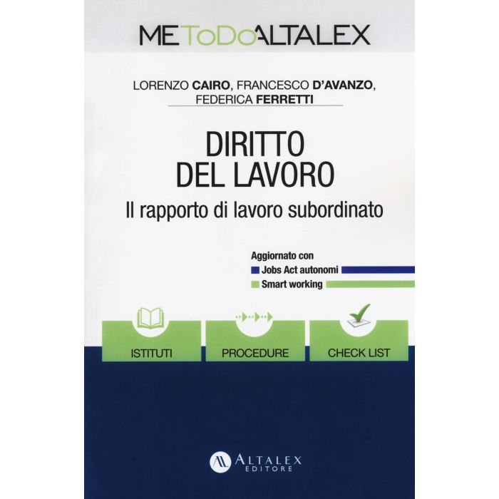 In questo volume sono trattati, in modo sistematico e molto pratico, tutti gli argomenti che riguardano il diritto del lavoro. Si analizzano: gli aspetti e le varie tipologie contrattuali; le figure professionali coinvolte compresa quella dirigenziale; la gestione e la modifica del rapporto di lavoro; la crisi d'impresa; la cessazione del rapporto di lavoro. Checklist, schemi e procedure, guidano il lettore attraverso la disciplina giuslavoristica, favorendo la gestione delle attività pratiche di studio. Il volume è aggiornato alle più recenti modifiche legislative inerenti il Jobs Act autonomi e lo smart working (L 22/05/2017, n. 81, pubblicata sulla Gazzetta ufficiale, n. 135 del 13/06/2017).