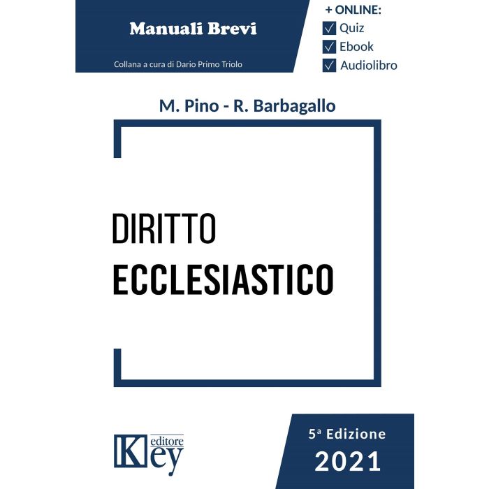 Il presente manuale è stato ideato appositamente con lo scopo di offrire una chiara e rapida disamina degli istituti fondamentali che caratterizzano il diritto ecclesiastico, oggi. Spesso ci si domanda cosa sia, in realtà, il diritto ecclesiastico e non poche sono le volte in cui si confonde tale materia con quella del diritto canonico. Se è vero da un lato che per molti aspetti e per molti istituti, diritto canonico e diritto ecclesiastico si intrecciano e si comminano tra loro, dall'altro lato, al fine di meglio comprendere la disciplina in questione, sarebbe più opportuno parlare di un diritto delle confessioni religiose. Di tutte le confessioni religiose e non solo, quindi, di quella cattolica, ed anche sino alla approvazione del non credo religioso. Questo perché, nella nostra epoca, - ci si sente di dire -, due sono i principi cardine che reggono il diritto ecclesiastico: la libertà religiosa e la multiculturalità: una multiculturalità sana basata sul rispetto delle diversità. Il manuale comincia con la disamina delle fonti e dei principi fondamentali su cui si regge il diritto ecclesiastico, prosegue con l'illustrazione degli enti ecclesiastici, della struttura della Città del Vaticano, dei beni del patrimonio ecclesiastico e della disciplina del sostentamento dei ministri di culto, dell'istruzione religiosa, dei fondamenti delle varie confessioni acattoliche, per concludersi con i grandi temi di attualità inerenti i fattori etici e bioetici. L'utilizzo di schemi e di griglie di approfondimento permette una lettura rapida ed aiuta una memorizzazione visiva, in modo da facilitare il candidato nello studio dei diversi argomenti. Ogni capitolo analizza sinteticamente gli argomenti trattati, senza tralasciare gli ultimi apporti forniti dalla giurisprudenza, in modo da assicurare un aggiornamento effettivo. Un valido ed utile strumento di studio per la preparazione dell'esame orale del concorso in magistratura o dell'abilitazione di avvocato.