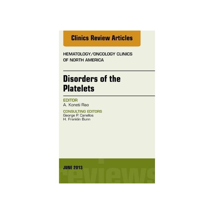 This issue of Hematology/Oncology Clinics is guest edited by Dr. A. Koneti Rao and focuses on Disorder of the Platelets. Article titles include: Mechanisms of Platelet Activation and Inhibition, Testing Platelet Function,Clinical Implications of Platelet Genomics and Proteomics, Congenital Thrombocytopenias, Immune Thrombocytopenias, Heparin Induced Thrombocytopenia, and Functional defects: Chronic granulomatous disease (CGD) and beyond.