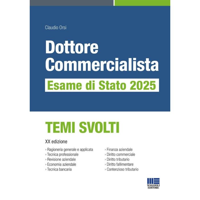 Questa raccolta di temi, giunta alla XX edizione, è uno strumento sintetico, ma, al tempo stesso, completo, per la preparazione dei candidati all'Esame di abilitazione per Commercialista. Il testo propone elaborati che tengono conto delle più recenti innovazioni apportate nei vari ambiti disciplinari, presentando anche temi relativi alla finanza aziendale, disciplina molto gettonata dalle Commissioni esaminatrici. In aggiunta ai temi per le materie aziendali e giuridiche, che offrono la massima varietà di argomenti, il volume presenta varie esercitazioni di ragioneria generale e applicata, tecnica professionale e contenzioso tributario. Le tracce proposte rientrano tra quelle che più di frequente sono assegnate in sede di esame di Stato. La proposizione di uno schema di analisi del singolo quesito permette poi al lettore di acquisire un metodo per affrontare in maniera razionale la prova. Numerosi elaborati hanno carattere interdisciplinare, sia per sollecitare il candidato a non procedere a uno studio nozionistico, sia perché temi meramente descrittivi si limiterebbero a replicare quanto può dire un qualunque volume utilizzato dal candidato per la preparazione all'esame. Questa raccolta si dimostra in ogni suo aspetto uno strumento di sicura utilità per tutti i candidati.