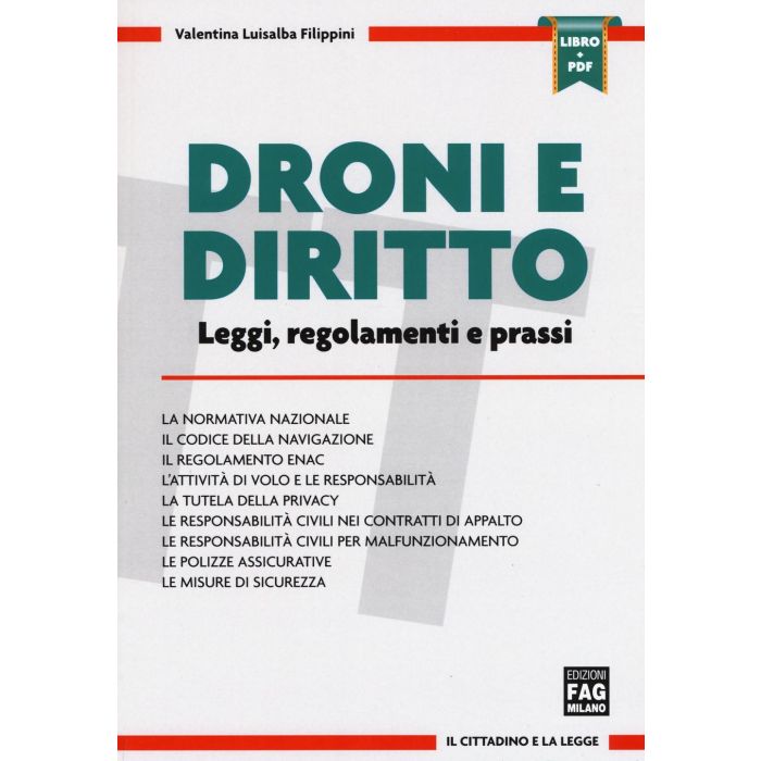I Droni (detti in gergo Sistemi Aerei a pilotaggio remoto o SAPR) sono oggi impiegati nei più svariati ambiti della vita quotidiana e della prassi commerciale. La diffusione e l'utilizzo su scala planetaria dei droni ha richiesto a giuristi e legislatori di ogni nazione lo studio e l'elaborazione, in breve tempo, di una specifica disciplina per regolamentarne l'uso. Questa attività si è tradotta in regolamenti nazionali, approfondimenti dottrinali, aggiornamenti normativi e in primi sforzi di armonizzazione. Quali sono, ad esempio, le normative applicabili per il regolare uso di un Drone nello spazio aereo nazionale e internazionale? I SAPR sono tutti uguali? L'uso di SAPR con scopi ricreativi comporta richiesta di autorizzazione? Come valutare la responsabilità in caso di collisione con altri droni, oggetti o persone? Esistono obblighi di copertura assicurativa? Chi risponde del malfunzionamento del drone? Come tutelare la privacy in caso di sorvolo di un SAPR che svolge videoriprese o videosorveglianza? E cosa dire della tendenza moderna al Drone Journalisml Quali sono le norme in tema di autorizzazioni all'utilizzo dei droni? Quali le norme in tema di sicurezza e prevenzione dei rischi? "Droni e Diritto" attraverso l'esegesi della regolamentazione ENAC, della normativa UE e delle leggi nazionali oggi vigenti, nonché grazie alle numerose interpretazioni fornite dalla dottrina e dalle Autorità di settore, cerca di dare risposte concrete a questi numerosi interrogativi. Il testo rappresenta, in sostanza, una breve e sintetica guida per giuristi e operatori, utile ad inquadrare in modo quanto più completo possibile, i principali ambiti in cui si snoda la disciplina di settore.