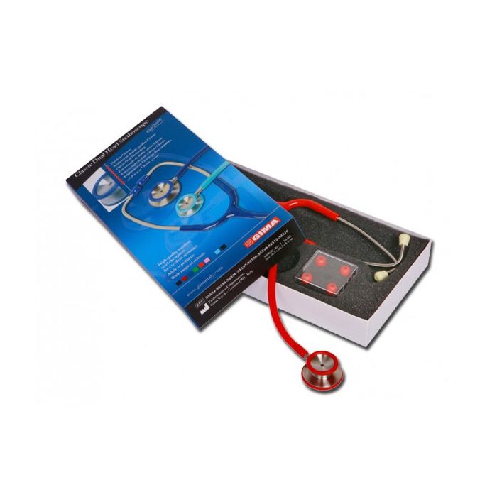Duofono tradizionale, con testa in acciaio inossidabile e membrana ad alta sensibilità che garantisce una perfetta auscultazione, una ghiera antibrivido evita al paziente il fastidio del contatto del padiglione sulla pelle.