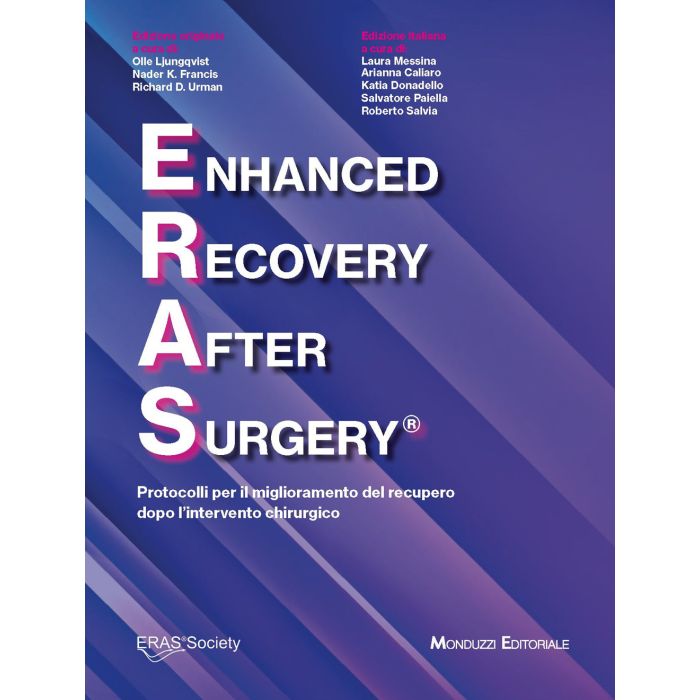 ERAS. Protocolli per il miglioramento del recupero dopo l'intervento chirurgico è un vero e proprio vademecum del metodo ERAS® (Enhanced Recovery After Surgery) in quanto raccoglie i risultati della ricerca, delle linee guida e delle raccomandazioni del protocollo ERAS®. L'opera si rivolge sia agli studenti del Corso di Laurea in Infermieristica, coinvolgendo anche i settori chirurgico e anestesiologico, sia ai professionisti che vogliono informarsi, aggiornarsi o specializzarsi nei protocolli ERAS®. Fornisce infatti indicazioni chiare sull'adozione del protocollo ERAS® nelle diverse specialità chirurgiche come la chirurgia colorettale, del fegato o la cardiochirurgia, con focus dettagliato sulle relative peculiarità. Si tratta della prima edizione italiana del più rilevante libro sul metodo ERAS pubblicato, per conto di ERAS® Society, il cui obiettivo è il miglioramento degli esiti chirurgici e la riduzione della degenza ospedaliera, da raggiungere salvaguardando la salute del paziente. Per questo, all'interno del testo si copre ogni aspetto dell'esperienza del paziente, dalla preparazione preoperatoria fino agli accorgimenti da seguire dopo la dimissione, soffermandosi sulla gestione pre-, intra- e postoperatoria e sulla prevenzione delle complicanze. Il manuale, inoltre, contiene esempi di percorsi ERAS, consigli pratici e tabelle delle linee guida sulle raccomandazioni riguardo preabilitazione, educazione del paziente e della sua famiglia, alimentazione, tecniche anestesiologiche, gestione intraoperatoria dei fluidi e della nausea e del vomito postoperatori e mobilizzazione. I curatori del volume: Laura Messina, Arianna Caliaro, Katia Donadello, Salvatore Paiella, Roberto Salvia.