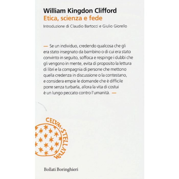 "È sempre sbagliato, ovunque e per chiunque, credere a qualcosa in base a evidenze insufficienti". Queste parole riassumono il progetto filosofico di William K. Clifford e la sua critica radicale verso ogni credenza religiosa. Inserendosi da protagonista nell'infuocato dibattito tra scienza e religione dell'Inghilterra vittoriana, il giovane filosofo e matematico articolava con grande finezza e ironia il suo pensiero. Il "dovere della ricerca", nemico di ogni principio di autorità, era per Clifford una condizione necessaria, tanto che per lui esisteva "soltanto una cosa più perversa del desiderio di comandare: la volontà di ubbidire". Claudio Bartocci e Giulio Giorello presentano qui, per la prima volta in italiano, i tre saggi più importanti e affilati del filosofo-matematico inglese, tanto attuali quanto sorprendenti nella loro chiarezza.