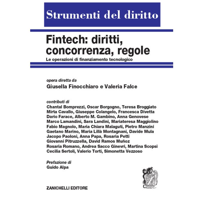 Il volume indaga a fondo le molteplici correlazioni tra tecnologia, finanza e diritto nella prospettiva della c.d. innovation policy e alla luce della c.d. quarta rivoluzione industriale, approfondendo temi quali le nuove tecniche di pagamento e-money, le sandbox, gli smart contract, la robo-advisory. La trattazione di tali profili viene condotta nella cornice dei diritti fondamentali dell'uomo, tra cui il diritto alla protezione dei dati personali e il diritto all'autodeterminazione, il diritto all'innovazione e della concorrenza, e alla luce del quadro normativo europeo recentemente arricchito da nuove fonti, tra cui le direttive sui pagamenti elettronici (PSD2) e sui servizi di investimento (MiFID2), il regolamento sulla protezione dei dati personali (GDPR), la riforma del regolamento e-Privacy. L'opera si propone quindi di fornire una lettura sistematica del fenomeno «Fintech» insieme alle ricadute di siffatta disruptive innovation sul mercato e sulla concorrenza, sul diritto e sull'organizzazione delle fonti, sulla politica, sull'attività di vigilanza e sulle tutele offerte, sulla dimensione europea e sul mercato unico digitale, sugli aspetti penalistici.