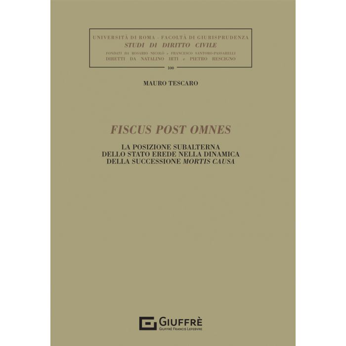 È diffusa la convinzione che lo Stato non sia un normale erede bensì assuma una posizione successoria a sé stante compendiata tramite il brocardo fiscus post omnes, però senza che si siano ancora ricostruite complessivamente nell'ambito di una apposita indagine monografica le varie caratteristiche di tale posizione nell'attuale dinamica della successione mortis causa. La presente ricerca tenta di colmare la lacuna in parola dimostrando come, al fine di servire nel modo migliore i vari interessi privati coinvolti nella vicenda, l'entrata in gioco dello Stato dovrebbe essere sovente posticipata rispetto all'attivazione della curatela dell'eredità giacente e comunque formalizzata attraverso un provvedimento giudiziale diretto a completare una fattispecie complessa a formazione progressiva.