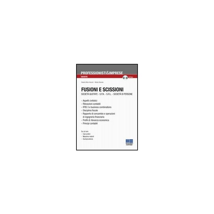 Le fusioni e scissioni rappresentano una tipica operazione straordinaria nell'ambito delle concentrazioni o separazioni di business aziendali. Gli aspetti civilistici sono particolarmente articolati e prevedono regimi differenziati per s. P. A. , s. R. L. , società quotate, cooperative, società di persone ed altri enti, con specifiche esigenze di coordinamento che il volume illustra con chiarezza e analiticità. Il principio contabile oic 4, specificatamente dedicato a fusioni e scissioni è analizzato approfonditamente, considerando non solo il coordinamento delle situazioni patrimoniali di riferimento, apertura e chiusura dei conti, ma anche le complesse tematiche inerenti la contabilizzazione di avanzi e disavanzi da concambio o da annullamento. In ambito fiscale, il principio base della neutralità delle fusioni e scissioni è esaminato congiuntamente alle complesse disposizioni antielusive, facendo riferimento anche a circolari ministeriali e dottrina e trattando anche le tematiche relative alle imposte indirette. Gli aspetti di valutazione e ingegneria finanziaria, principalmente inerenti la stima del concambio, sono illustrati anche con l'ausilio di esempi pratici. Una raccolta di casi pratici e particolari - riportata sull'allegato cd rom completa l'opera, che è aggiornata con le più recenti massime giurisprudenziali e notarili e con i principi contabili oic e ias/ifrs.