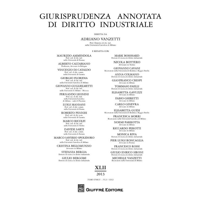 Giurisprudenza annotata di diritto industriale. Anno 42º (2013)