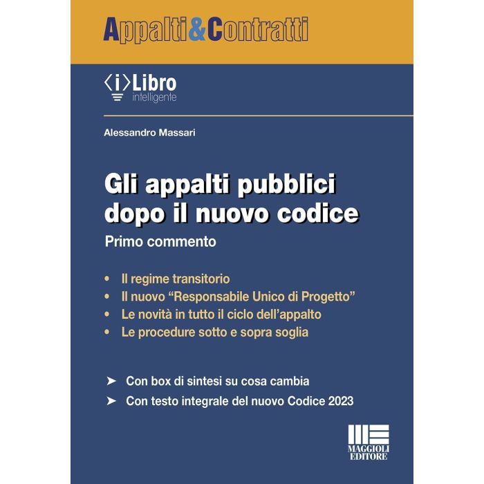 Il regime transitorio. Il nuovo "Responsabile Unico di Progetto". Le novità in tutto il ciclo dell'appalto. Le procedure sotto e sopra soglia Con il D.Lgs. n. 36 del 31 marzo 2023 è stato approvato il nuovo Codice dei contratti pubblici, emanato in attuazione della Legge delega n. 78/2022.  Sia le innovazioni che le discontinuità rispetto al D.Lgs. 50/2016 sono significative e profonde. Pertanto, questo volume intende essere una guida, per un primo sicuro orientamento nella complessa e articolata disciplina del nuovo codice, privilegiando una descrizione chiara, un linguaggio semplice e un approccio sistematico. Inoltre, questo nuovo Codice si presenta come il primo testo unico "autoapplicativo" essendo già incorporata nei suoi allegati la normativa di dettaglio di natura regolamentare. Nel manuale sono incorporati: Box di sintesi su cosa cambia. Il testo integrale del nuovo codice 2023 L'esigenza prioritaria di valorizzare gli appalti pubblici come leva strategica per la ripresa dell'economia, il rilancio degli investimenti e l'attuazione del PNRR, hanno condotto il legislatore ad un radicale mutamento di prospettiva nella regolazione della materia, orientandola verso i nuovi principi del "risultato", della "fiducia" e dell'"accesso al mercato". Il drammatico contesto economico-sociale, indotto prima dalla lunga pandemia e ulteriormente aggravato dal conflitto russo-ucraino, e la ineludibile necessità di garantire un'efficace e tempestiva ripresa, hanno anche richiesto la conversione di molte delle recenti misure emergenziali e transitorie in norme a "regime ordinario" (procedure di affidamento, tempi di espletamento dei procedimenti di aggiudicazione, rinegoziazione e revisione prezzi, soglie degli affidamenti diretti e procedure semplificate, ecc.).