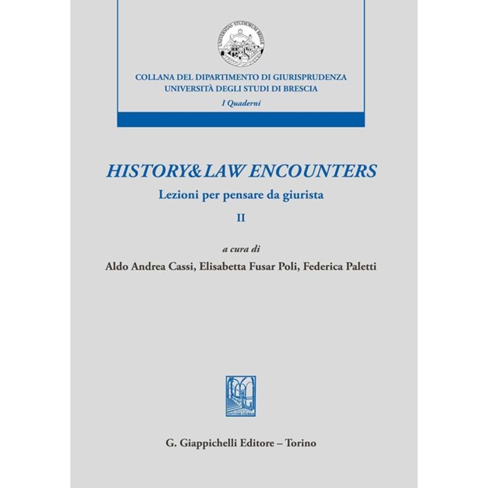 Il presente volume raccoglie gli esiti della seconda edizione degli History&Law Encounters, progetto didattico e scientifico ideato dagli insegnamenti di Storia del diritto del Dipartimento di Giurisprudenza dell'Università degli Studi di Brescia ed offerto agli studenti, in avvio di studi, per riflettere sul senso - nella doppia accezione di "significazione" e "direzione"- dell'essere giurista oggi. Gli Autori, coinvolti nell'iniziativa, hanno dato voce a temi e problemi che attraversano l'esperienza giuridica europea, muovendo da una (ri)lettura delle fonti, colte nella loro piena storicità. Capitolari carolingi ed ottoniani, costituzioni imperiali e decretali, statuti municipali e dei collegi professionali, prassi giudiziarie tra la Terraferma e Venezia, Statuto albertino, codici penali e atti processuali tra Otto e Novecento hanno così restituito, in forza della loro vivida peculiarità, la ricchezza e complessità di un passato che entra in attivo dialogo con il sapere e agire giuridico del presente.