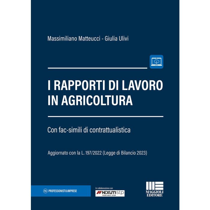 In agricoltura i rapporti di lavoro non seguono la specialità del diritto agrario, ma si esplicano in una accessorietà al rapporto di lavoro del dipendente che però non è qualificato rispetto alla normativa generale. Ci sono inoltre da considerare aspetti specifici sia nell'ambito della contrattazione nazionale e provinciale collettiva, sia nella gestione degli adempimenti previdenziali ed assicurativi. Il volume analizza proprio le criticità e determina, da un punto di vista pratico ed operativo, le linee guida per poter assistere gli operatori di settore nell'analisi, nello studio e nella gestione di questi rapporti che in prima battuta talvolta impauriscono. La verifica puntuale dei soggetti dell'attività agricola, siano essi singoli o associati, autonomi o subordinati, è funzionale all'analisi precisa e dettagliata degli adempimenti legati a questo settore, con specifico riguardo alla gestione dei lavoratori OTD e OTI. Un focus è rivolto alle novità introdotte dalla Legge di Bilancio 2023 ed in particolare a: decontribuzione giovani imprenditori agricoli; decontribuzione nuove assunzioni; voucher e lavoro occasionale. Numerosi schede e fac-simili sono stati necessariamente e volutamente inseriti al fine di agevolare il primo impatto nella gestione dei rapporti di lavoro in agricoltura e permettere una facile evidenza e personalizzazione degli stessi modelli. Il volume rappresenta sostanzialmente uno strumento flessibile, intuitivo, snello, completo, chiaro e particolareggiato, funzionale per tutti coloro che a diverso titolo si trovano a gestire i lavoratori in questo settore così particolare, ma altrettanto interessante.