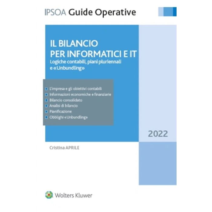 "Il bilancio per informatici e IT" osserva le regole di redazione della contabilità e costruzione del bilancio (civilistico e consolidato), con la specifica intenzione di rendere semplice e comprensibile una materia complessa a chi, magari per la prima volta, si avvicina al mondo contabile e del bilancio in modo indiretto e trasversale. Questo è il caso degli analisti gestionali e dei progettisti informatici, sempre più coinvolti, affianco agli amministrativi in senso stretto, nella messa a punto di sistemi informativi e software dedicati, per il perseguimento degli obiettivi contabili dell'impresa. Avendo questo obiettivo, nel volume vengono adottati termini non tecnici, ma parlanti che possano essere di aiuto nel percorso di conoscenza della materia. Il libro, nello specifico, introduce il lettore verso: il bilancio d'esercizio; il bilancio consolidato; l'analisi di bilancio; il budget e i piani pluriennali. Un capitolo specifico e innovativo è dedicato agli obblighi contabili cosiddetti "Unbundling", che non ricadono solo sulle imprese che operano in via prioritaria nei settori dell'energia, del gas ed idrico, ma che interessano ormai per diversi motivi - primo fra tutti il risparmio energetico - una grande quantità di soggetti, che si sono dotati ad esempio di impianti fotovoltaici o di cogenerazione anche ai soli fini dell'autoconsumo. Si tratta di disposizioni importanti e molto attuali che, nonostante siano trascorsi più di vent'anni dalla loro introduzione, sono poco conosciute ma di ampia applicazione.