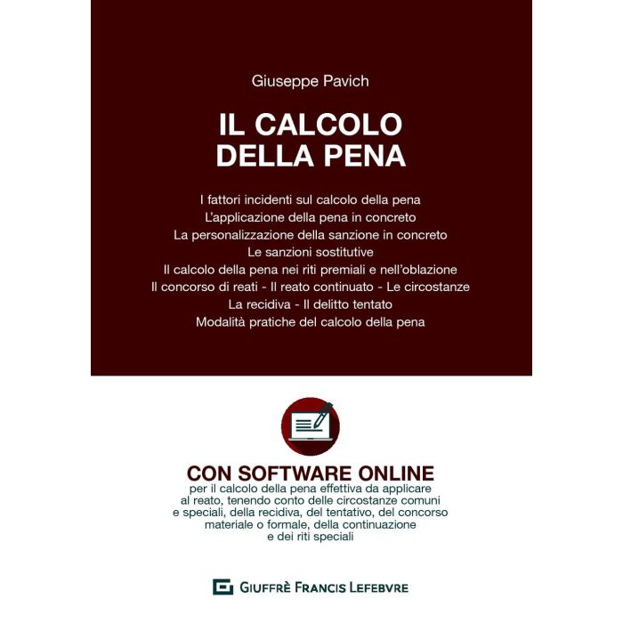 Come gli avvocati sanno, spesso in appello gli errori riscontrati nelle sentenze di primo grado riguardano il calcolo della pena: errori materiali ma anche "tecnici", conseguenza di numerose variabili legate agli istituti sostanziali e processuali applicabili in ciascun caso. La determinazione della pena non è infatti solo frutto della discrezionalità del giudice ma anche della applicazione di regole e logiche normative e giurisprudenziali. Focalizzare i principi che regolano tali istituti e i criteri applicativi per il calcolo della pena è necessario non solo al giudice che deve applicarla ma anche alle altre parti processuali, sia per le rispettive richieste o sollecitazioni che in funzione delle eventuali impugnazioni. Questo libro, giunto alla sua terza edizione e per la prima volta accompagnato dall'omonimo software, fornisce, con un taglio pratico ma anche con i principali e più recenti riferimenti dottrinali e giurisprudenziali, una guida ragionata sulle modalità in base alle quali deve essere determinata la sanzione penale in caso di condanna. In appendice sono presenti esempi di calcolo, elaborati sulle casistiche più ricorrenti e utilizzabili dagli operatori in molteplici casi.
