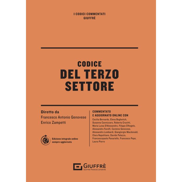 Il volume si propone di offrire un commento organico alla disciplina del Terzo settore di cui al d.lgs. 3 luglio 2017, n. 117, come aggiornata dalle recentissime modifiche operate dalla legge 4 luglio 2024, n. 104. Ciascun articolo del decreto è oggetto di un apposito commento che, in maniera chiara e approfondita, ne focalizza i principali aspetti teorici e applicativi, illustrando le posizioni della dottrina e della giurisprudenza e dando conto della prassi amministrativa. ll volume fornisce altresì una bibliografia dettagliata e aggiornata ed è arricchito da un'Appendice contenente i principali decreti ministeriali attuativi della disciplina primaria, nonché le più recenti circolari e note ministeriali adottate a esplicazione e ulteriore conformazione della materia. Con l'acquisto dell'edizione cartacea è?compresa la?consultazione della versione online e dei relativi aggiornamenti per 12 mesi.