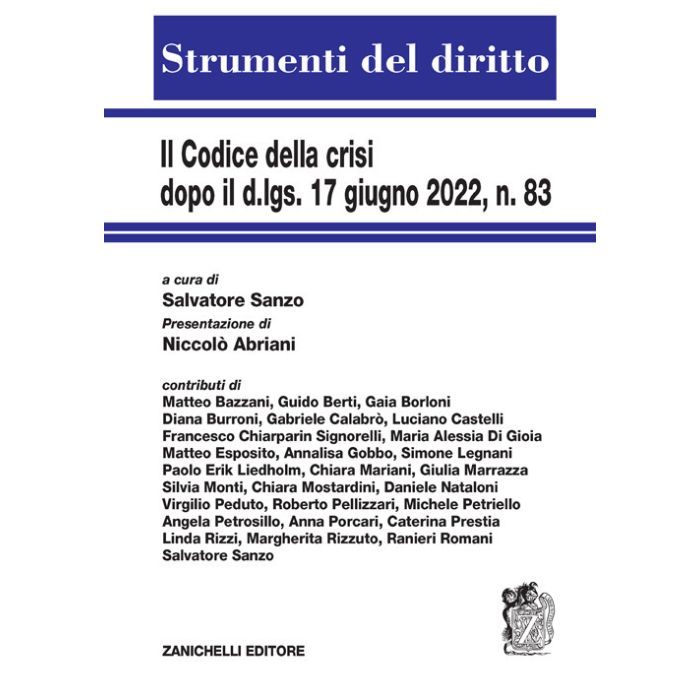 Il 15 luglio 2022 il Codice della crisi e dell'insolvenza è finalmente diventato realtà. Le radicali modifiche maturate nel tempo intercorso tra la sua prima stesura e quella attuale hanno reso necessario questo libro, scritto alla luce del d.lgs. 17 giugno 2022, n. 83 e ad esso interamente aggiornato. L'opera esce in continuità scientifica ed editoriale con il precedente Il nuovo Codice della crisi d'impresa e dell'insolvenza a cura di Salvatore Sanzo e Diana Burroni, pubblicato nel 2019 con largo successo di vendite.