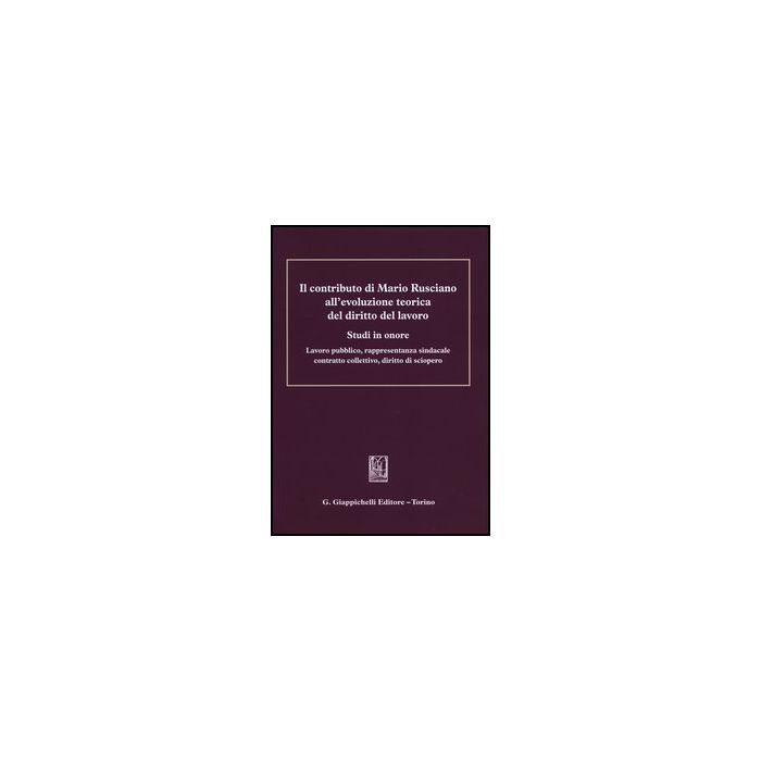 Il contributo di Mario Rusciano all'evoluzione teorica del diritto del lavoro. Studi in onore. Lavoro pubblico, rappresentanza sindacale, contratto collettivo, diritto di sciopero [ Giappichelli]