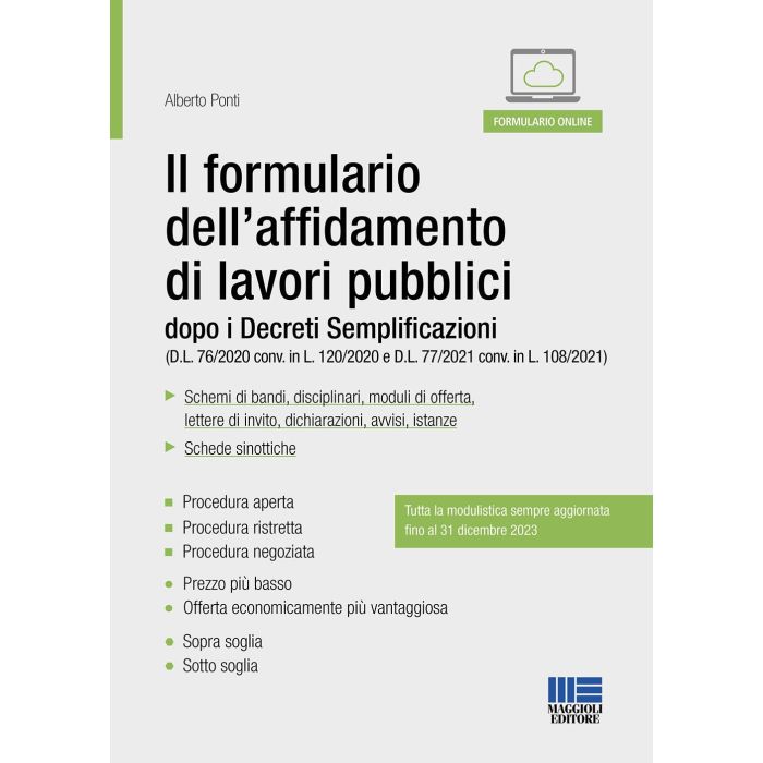 Il D.Lgs. 18 aprile 2016, n. 50, come modificato dal D.L. 76/2020 e dal D.L. 77/2021 (Decreto Semplificazioni e Decreto Semplificazioni-bis) e relative leggi di conversione, ha innovato la contrattualistica pubblica recependo le direttive comunitarie in materia. Detti decreti hanno cercato di introdurre strumenti di semplificazione al fine di incentivare gli investimenti pubblici nel settore delle infrastrutture e dei servizi pubblici, nonché al fine di far fronte alle ricadute economiche negative a seguito delle misure di contenimento e dell'emergenza sanitaria dovuta alla pandemia. A fronte di una "sbandierata" semplificazione da parte delle Istituzioni centrali, la materia degli appalti pubblici risulta sempre più complessa e farraginosa, sia per la scarsa chiarezza normativa che per il proliferare continuo di norme, nonché per le molteplici interpretazioni diverse fornite da vari attori del sistema (ANAC, giurisprudenza amministrativa, dottrina ecc.). La stesura della documentazione per lo svolgimento di una procedura di gara necessita del coordinamento di moltissimi atti e pareri emanati da vari organi che, a volte, non sono nemmeno coordinati tra di loro. Il presente lavoro, che non costituisce il solito manuale dottrinario, ha l'obiettivo di fornire agli operatori del settore un agile strumento per la definizione della documentazione amministrativa necessaria allo svolgimento delle principali procedure di gara per appalti di lavori pubblici, ovvero l'aperta, la ristretta e la negoziata. Per ciascuna delle citate procedure sono stati elaborati un breve excursus, ove si evidenziano gli aspetti caratterizzanti la procedura stessa, gli schemi degli atti principali, quali bandi, disciplinari e lettere di invito con relativi allegati necessari all'indizione delle diverse gare, gli schemi di dichiarazioni che devono rendere i componenti della commissione e gli schemi dei verbali di gara. Il tutto è stato suddiviso in base all'importo della procedura da avviare (come disciplinato dalla normativa vigente al momento della pubblicazione) e al criterio di aggiudicazione che si vuole utilizzare. La modulistica riportata è già stata impiegata in svariate procedure con risultati soddisfacenti; chiaramente si tratta di modelli che possono comunque essere ulteriormente integrati, adeguati e personalizzati dalle singole stazioni appaltanti in base al loro modus operandi. Considerato che il limite della procedura negoziata per il settore dei lavori pubblici è abbastanza elevato, si è ritenuto necessario inserire nel formulario la documentazione necessaria alla creazione dell'elenco degli operatori economici, per consentire di addivenire facilmente alla scelta delle aziende da invitare alle singole gare indette dalla stazione appaltante. A completamento ed in chiusura, al fine di evitare all'operatore di dover svolgere continue ricerche, si è predisposta una breve raccolta di norme, decreti ministeriali e atti dell'ANAC richiamati nella documentazione contenuta nel formulario. Alberto Ponti Avvocato amministrativista, esperto in Contrattualistica pubblica, già Vice Segretario Generale, autore di diverse pubblicazioni inerenti all'attività della Pubblica Amministrazione, Docente per il personale delle Pubbliche Amministrazioni.