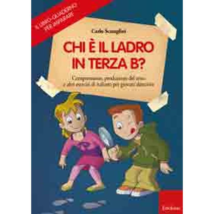 È una tranquilla mattina nella scuola di Mirko e Margherita, ma all'improvviso un grido della maestra squarcia il silenzio: «Chi è il ladro in terza B?». Ha così inizio un avvincente racconto che trasformerà i piccoli lettori in veri e propri detective armati di... carta e matita! Questo infatti è un «libro-quaderno», nel quale non solo si legge, ma anche si scrive, perché ogni capitolo del racconto è affiancato da esercizi di comprensione e produzione del testo, di analisi grammaticale, di arricchimento semantico-lessicale, di ortografia o di morfosintassi, oltre che da box di riflessione nei quali scrivere le proprie esperienze, emozioni e opinioni. Con l'aiuto della mappa allegata al volume, analizzando i dettagli forniti nella narrazione e risolvendo correttamente gli esercizi, i bambini si divertiranno a scoprire l'insospettabile colpevole del furto, rielaborando attivamente la storia ed esercitando nel frattempo le proprie abilità.