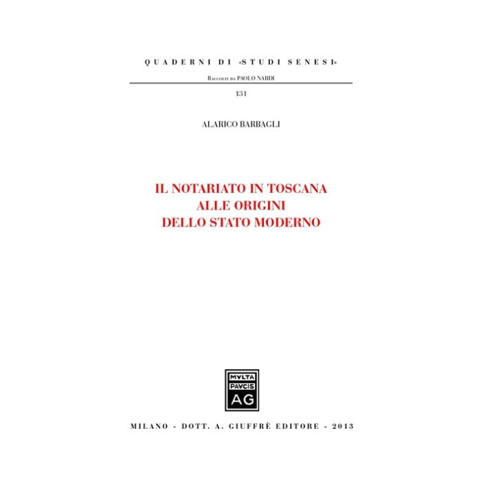 Nel corso del Cinquecento la Toscana visse un periodo storico caratterizzato da un profondo rinnovamento dei propri assetti politici e istituzionali, attuato dalla famiglia Medici mediante la trasformazione dei tradizionali ordinamenti repubblicani di origine medievale in uno Stato moderno di tipo assoluto. Il volume affronta lo studio dell'arte notarile in rapporto a tale processo riformatore, approfondendo l'esame delle norme che, in materia di notariato, furono maggiormente interessate dalle innovazioni portate dal governo mediceo. In particolare, l'autore si sofferma sulla disciplina dell'ordinamento territoriale del notariato e del rapporto tra le diverse corporazioni esistenti nelle città e terre toscane, passando, poi, ad analizzare la normativa in materia di accesso alla professione e di conservazione della documentazione notarile e trattando, infine, del problema del coinvolgimento del notariato nella nascente burocrazia statuale. Per ciascuno dei predetti temi l'autore ricostruisce l'apparato giuridico ereditato dalla tradizione medievale, indicando e descrivendo gli interventi normativi cinquecenteschi in modo da individuare le innovazioni e le conferme che interessarono il notariato durante il primo secolo di vita del ducato mediceo.