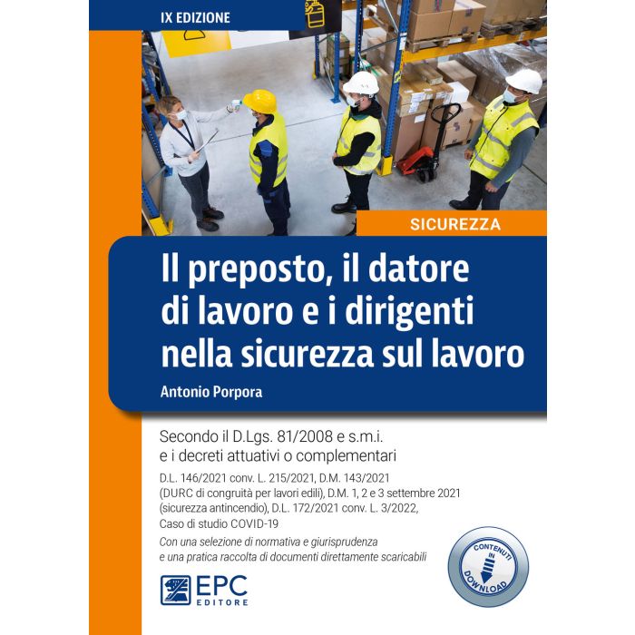| Indice | Introduzione - Il quadro normativo essenziale - Identificazione dei soggetti - Compiti del datore di lavoro - Compiti comuni a datore di lavoro e dirigenti - I compiti dei preposti - I rapporti con…il Responsabile del Servizio di Prevenzione e Protezione …il Medico Competente … i Rappresentanti dei Lavoratori per la Sicurezza …gli Organismi Paritetici …le Organizzazioni Sindacali …gli Organi di Vigilanza - La responsabilità per l'inadempimento del dovere di sicurezza a carico di datori di lavoro, dirigenti, preposti, lavoratori, committenti e fornitori – Casi di studio (COVID-19) e conclusioni - Bibliografia - Contenuti digitali