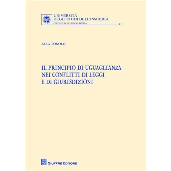 Questo volume si inquadra nel più ampio filone degli studi concernenti l'operatività dei principi fondamentali, specie di derivazione costituzionale, nei diversi campi dell'ordinamento e della corrispondenza tra principi costituzionali e di fonte internazionale. Molteplici e differenti sono le norme codificate in attuazione del principio di uguaglianza all'interno delle fonti internazionali, analogamente peraltro a quelle presenti nelle fonti interne ed europee. La ricostruzione di un principio generale a garanzia di un diritto di natura fondamentale, ed oggetto di un obbligo statuale erga omnes è il risultato dell'evoluzione della disciplina internazionale in tema di diritti essenziali della persona, che ha evidenziato un interesse giuridico al rispetto di tali diritti in capo alla comunità degli stati, con riferimento anche al principio di uguaglianza, generalmente inteso. Da tali premesse parte l'indagine condotta nel volume al fine di valutare gli effetti che il principio in esame determina nell'ambito del diritto internazionale privato, in ragione della rilevanza che hanno i diritti fondamentali dell'uomo nelle relazioni tra privati in situazioni atte a determinare conflitti di leggi e di giurisdizioni.