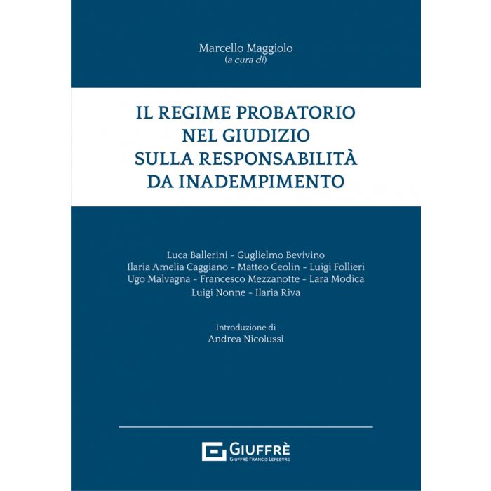 La scelta di affrontare il tema della responsabilità da inadempimento nella prospettiva del giudizio civile e dall'angolo visuale del regime probatorio, si colloca entro la celebre tradizione dottrinale che dell'obbligazione coglie la connessione forse inscindibile con il processo; e nel contempo rende inevitabile che i lavori raccolti all'interno dell'opera abbiamo tutti un'unica impronta metodologica. L'impronta nasce dalla inevitabile esigenza di raffrontare l'esperienza giurisprudenziale, all'interno della quale si svolge per intero la fase istruttoria e quindi la raccolta di prove, precostituite e no, con i principi che presiedono da un lato la prova, e dall'altro lato il sistema della responsabilità da inadempimento. Sulla base di questa impronta metodologica vengono così trattati i temi della prova (documentale e per testi) rispettivamente del credito volontario e del credito involontario; della prova di adempimento o inadempimento (anche nella prospettiva delle azioni sociali di responsabilità); della prova riferita ai casi di impossibilità liberatoria; della prova del danno (emergente e lucro cessante) e delle interferenze con la sua possibile liquidazione equitativa; ancora, dell'attività probatoria richiesta in funzione di quanto previsto in materia di inadempimento colposo e doloso (e quindi di danno prevedibile e imprevedibile), di fatto colposo del creditore e di evitabilità del danno. Il volume si chiude infine con la necessaria trattazione del tema della prova nel giudizio sulla causalità giuridica.