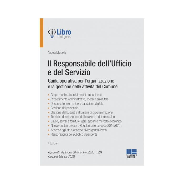L’opera si caratterizza per il taglio pratico e per i richiami al quadro normativo al fine di facilitarne e velocizzarne la lettura; con puntuali riferimenti alla più autorevole e recente giurisprudenza vengono analizzate tutte le funzioni correlate ai procedimenti amministrativi, i vari tipi di accesso agli atti e la distinzione tra Responsabile di Servizio e Responsabile di Procedimento; si forniscono gli strumenti di base per la gestione del personale, degli atti di programmazione (bilanci, budget, ecc...), per la redazione di delibere e determine, per la gestione delle procedure di acquisti di lavori, beni e servizi. Viene affrontato anche il tema della privacy e delle numerose responsabilità in cui può incorrere il pubblico dipendente nell’espletamento delle sue mansioni.
