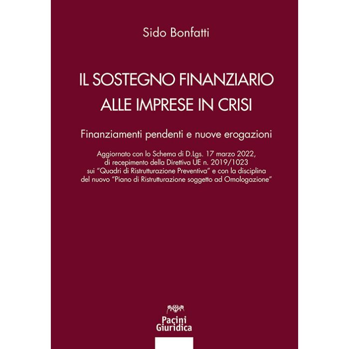 Il presente Volume è dedicato agli studiosi ed ai professionisti che sono interessati alla individuazione ed alla considerazione della disciplina del sostegno finanziario alle imprese "in crisi". Vengono considerate separatamente la "Nuova finanza in progress" (continuazione dei finanziamenti pendenti) e la "Nuova finanza ex nunc" (accensione di nuovi finanziamenti). Per l'una e per l'altra vengono considerate separatamente la disciplina delle procedure concorsuali vigenti - comprese la "Composizione Negoziata" della Crisi e il "Concordato Semplificato" -; e di quelle disciplinate dal "Codice della Crisi d'Impresa e dell'Insolvenza". Viene altresì esaminata la disciplina della procedura del "Piano di Ristrutturazione Omologato", in corso di approvazione per il recepimento della Direttiva comunitaria "Insolvency". Insieme all'attenzione al sostegno finanziario prestato dalle Banche e dagli altri Intermediari finanziari viene considerato quello assicurabile dai "finanziamenti-soci", tanto nell'ambito della singola società, quanto nell'ambito del "gruppo" societario: partitamente per le procedure vigenti e per quelle previste dal CCII.