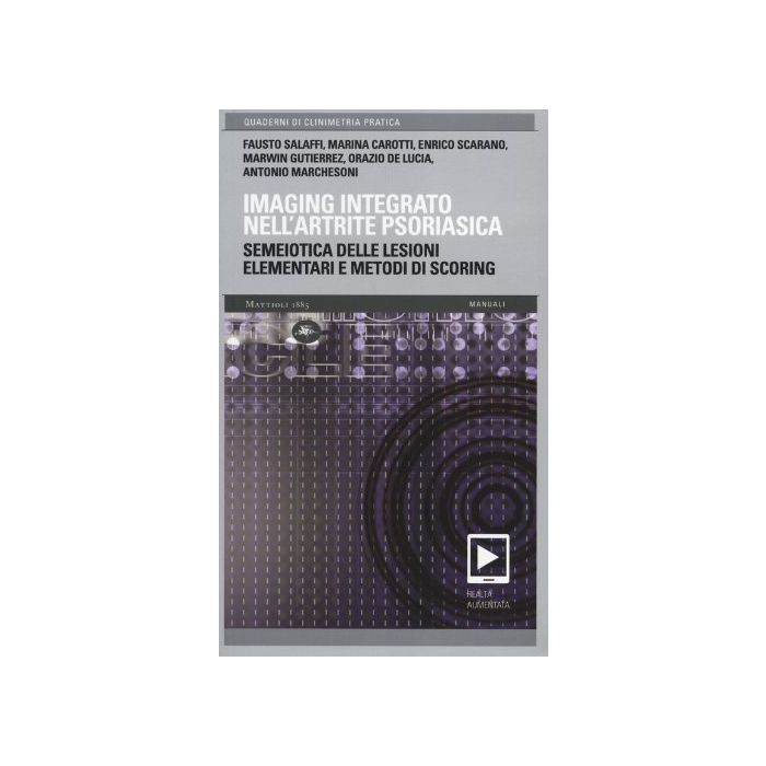 | Indice | 1. Inquadramento diagnostico e classificativo dell'artrite psoriasica - Introduzione - Aspetti clinici - Criteri classificativi 2. Semeiotica delle lesioni elementari in radiologia convenzionale - Lesioni radiologiche in corso di interessamento periferico - Lesioni radiologiche in corso di interessamento assiale 3. Metodi di valutazione della progressione del danno anatomico in Radiologia Convenzionale - Metodi di valutazione della progressione del danno anatomico in radiologia convenzionale - Metodi di valutazione della progressione radiologica dell'interessamento assiale 4. Semeiotica delle lesioni elementari in ecografia - Introduzione - Semeiotica delle lesioni elementarin in ecografia 5. Metodi di scoring per la valutazione dei rilievi ecografici nei pazienti con artrite psoriasica 6. Semeiotica delle lesioni elementari e metodi di valutazione semiquantitativi in Risonanza Magnetica - Introduzione - Fondamenti generali di RM - Coinvolgimento assiale: segni di infiammazione attiva e lesioni strutturali - Coinvolgimento periferico: segni di infiammazione attiva e lesioni strutturali (Sinovite, Tenosinovite, Dattilite, Entesite, Onicopatia, Edema Osseo, Erosioni Osee, Proliferaizione ossea) - Elementi di diagnosi differenziale con l'artrite reumatoide - Risonanza Magnetica whole-body - Metodi di valutazione semiquantitativa delle scheletro appendicolare in RM CASI CLINICI SOLUZIONI AI TEST DI APPRENDIMENTO |