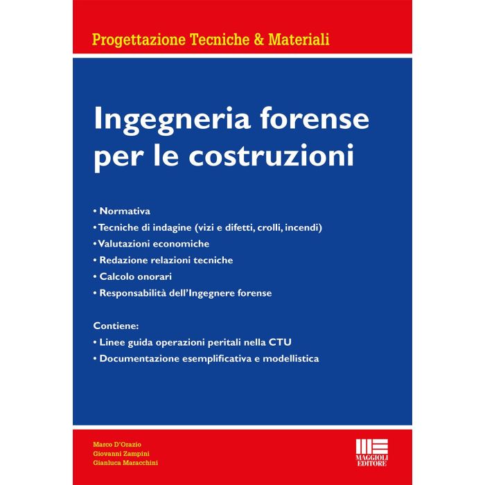 Quest'opera si concentra sull'ingegneria forense, legata alla progettazione, costruzione e gestione degli edifici. Ambito nel quale, con sempre maggiore frequenza, emergono contenziosi per le conseguenze di errori durante i processi ideativi, realizzativi o gestionali. In particolare, nel campo delle costruzioni, l'ingegneria forense si occupa di comprendere, sulla base del risultato finale di un accadimento (un incendio, un crollo di un fabbricato o la perdita di funzionalità di edifici o parti di questi), come si è verificato l'errore (uno o più) che ha portato a questo esito e a chi può essere attribuita questa responsabilità. Il manuale, dal taglio pratico e applicativo, descrive le tecniche e i metodi di indagine da usare nelle situazioni in cui l'ingegnere forense è chiamato a operare: incendi, vizi e difformità delle opere edilizie, crolli e dissesti. Non manca l'analisi relativa alle valutazioni economiche dei beni sottoposti a indagine, i profili normativi e di responsabilità dell'ingegnere forense. Il libro contiene inoltre una guida per il calcolo degli onorari e, in appendice, le linee guida da applicare per le operazioni peritali nelle CTU e una raccolta di modelli e documenti di supporto per l'attività.