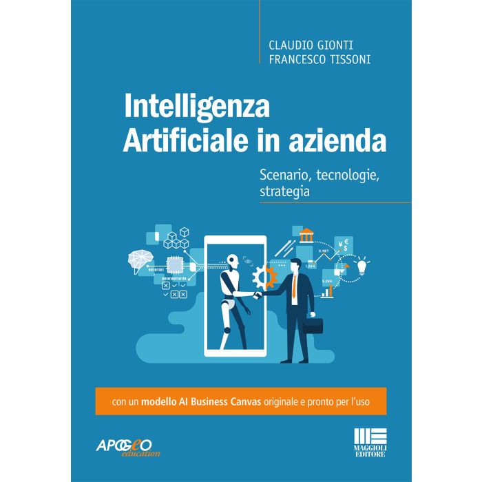 Che cos'è esattamente l'Intelligenza Artificiale (AI)? Che cosa è in grado di fare già oggi per il business? Quali applicazioni AI possono creare valore per la mia attività? Con quali progetti e come posso iniziare a utilizzare l'AI in azienda? Sono domande che oggi ogni leader aziendale si deve porre; fornire una guida che aiuti a rispondere è lo scopo che si propone questo libro. Nella prima parte vengono presentate le principali tecnologie AI (Machine Learning, Deep Learning, Natural Language Processing, Computer Vision, Robotics) mettendone in evidenza, in particolare, le applicazioni in ambito aziendale in diversi settori. La seconda parte si concentra sullo sviluppo di una strategia AI per il vantaggio competitivo, proponendo un modello di analisi, l'AI Business Canvas, originale e pronto per l'uso.