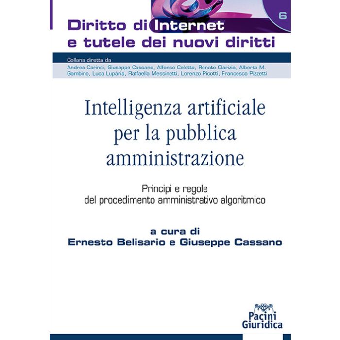 INDICE DEL LIBRO: 1 - Introduzione all’intelligenza artificiale (Roberta Raimondo); 2 - Intelligenza artificiale e amministrazione digitale: possibili sviluppi della legislazione italiana (Enrico De Giovanni); 3 - Il quadro normativo vigente in materia di ia nella pubblica amministrazione (CAD, GDPR, IA ACT) (Silvia Cal); 4 - L’istruttoria algoritmica (Davide Mula); 5 - La decisione amministrativa algoritmica tra efficienza e garanzie (Antonino Mazza Laboccetta); 6 - La partecipazione procedimentale (Tommaso Cocchi); 7 - Legalità algoritmica e vizi procedimentali (Ernesto Belisario e Francesca Ricciulli); 8 - Discrezionalità algoritmnica e sindacato del giudice amministrativo (Anna Corrado); 9 - Il lavoro umano nella pubblica amministrazione algoritmica (Andrea Tatafiore); 10 - Trattamento dei dati personali e processo decisionale automatizzato nella PA (Giuseppe D’Acquisto); 11 - La trasparenza amministrativa e gli algoritmi (Enrico Carloni); 12 - Dati di addestramento, intelligenza artificiale e pubblica amministrazione (Eugenio Prosperetti); 13 - Cybersecurity e Intelligenza artificiale: tra nuove sfide e profili di criticità (Stefano Aterno); 14 - Il procurement di soluzioni di I.A. (Elio Guarnaccia e Giulia Campo); 15 - Amministrazione algoritmica e responsabilità (Giuseppe Maria Marsico); 16 - L’uso di soluzioni di riconoscimento facciale per la sicurezza (Riccardo Lanzo); 17 - L’uso di soluzioni I.A. in sanità (Michele Iaselli); 18 - Algoritmi e appalti pubblici (Elio Guarnaccia); 19 - Apprendimento automatico e interpretazione delle norme (Ludovico Anselmi); 20 - Non solo chatbot: IA e comunicazione con i cittadini (Angela Creta); 21 - Intelligenza Artificiale per controlli amministrativi e rilevamento delle frodi (Fabrizio Paonessa); 22 - Amministrazione della giustizia e intelligenza artificiale (Antonella Ciriello); 23 - L’IA per il monitoraggio delle politiche pubbliche (Andrea Del Forno).