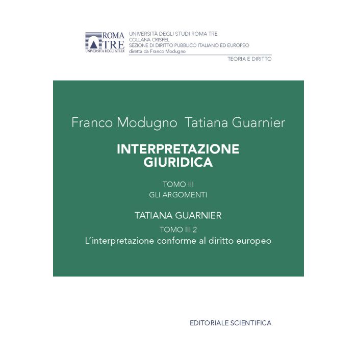 Il presente Tomo si prefigge lo scopo di indagare gli "argomenti" dell'interpretazione giuridica. Esso si inquadra nell'ambito di una più ampia riflessione, condotta nei quattro Volumi di cui si compone l'Opera complessiva, integrando il lungo percorso in cui si è svolta, tramite l'analisi di alcune questioni che, nel corso del tempo, sono divenute cruciali. Uno spazio consistente è stato assegnato, in particolare, allo studio dei problemi suscitati dall'"interpretazione conforme", di cui si esaminano distintamente, nel tomo III.1, quelli propri dell'interpretazione conforme a Costituzione e, nel tomo III.2, quelli posti dall'interpretazione conforme al diritto europeo: ambiti nei quali all'applicazione del medesimo schema argomentativo non corrisponde identità di questioni ed ove, anzi, forte è il rischio che l'apparente somiglianza della struttura argomentativa occulti la differente natura dei problemi, per molti versi distinti e autonomi, che caratterizzano l'uno e l'altro.
