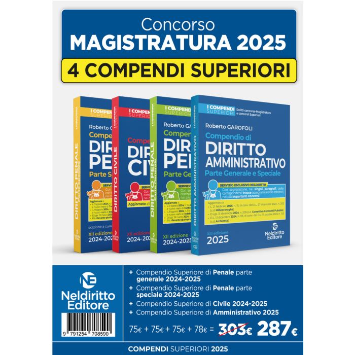 Kit 4 compendi superiori di Diritto Civile, Amministrativo (2025), Penale parte generale e Penale parte speciale - Neldiritto