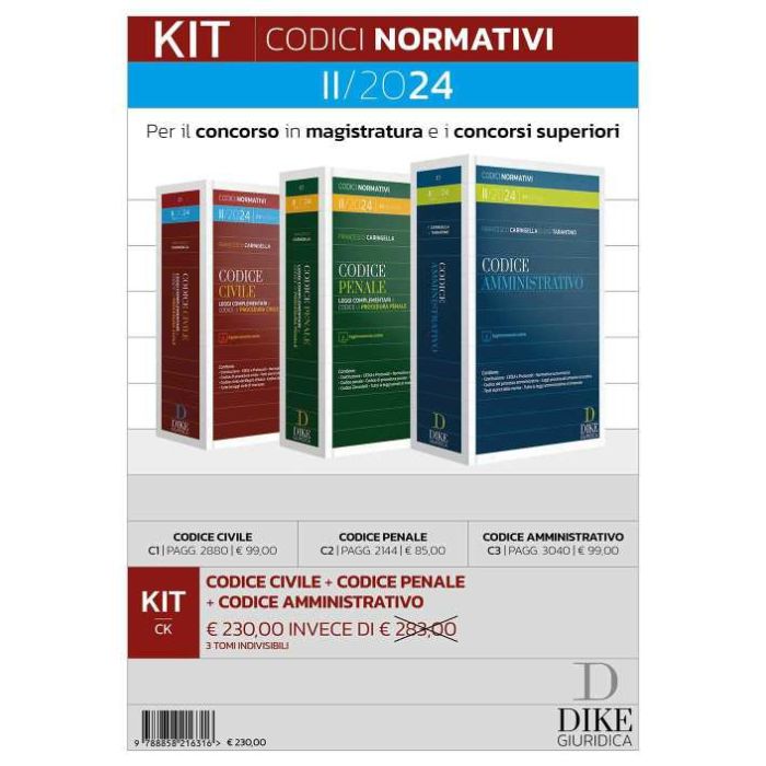 Kit codici normativi per il Concorso in Magistratura e i concorsi superiori II/2024: Codice Civile - Penale - Amministrativo. Con aggiornamento online (Caringella - Dike)