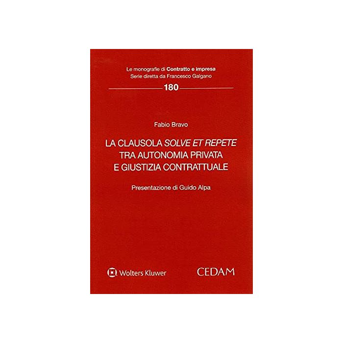 L'opera analizza criticamente la disciplina nazionale e internazionale della clausola solve et repete anche con riguardo a temi attuali, come gli effetti giuridici del Covid-19 sui contratti nei quali è prevista tale clausola e il rapporto tra la clausola in questione e la disciplina delle garanzie personali, con particolare riferimento ai contratti autonomi di garanzia, nell'ordinamento nazionale e nella prassi del commercio internazionale. Lo scritto muove da un'accurata indagine storica sull'applicazione del principio solve et repete, che ha poi pervaso l'area del contratto, offrendo un'attenta analisi della disciplina della clausola solve et repete e dei limiti alla sua applicabilità. Il volume si sofferma criticamente non solo sul dibattito dottrinale e giurisprudenziale sull'art. 1462 c.c., ma anche su temi nuovi e attuali, incluso l'impatto dei provvedimenti emergenziali (per fronteggiare la pandemia da Coronavirus) sui contratti con clausola solve et repete. Particolare enfasi viene data alla giustizia contrattuale e alla rivalutazione dell'intervento del giudice per «gravi motivi», ai sensi dell'art. 1462, co. 2, c.c. L'opera indaga ampiamente anche i contratti di garanzia autonoma nell'ordinamento nazionale ed anche per essi viene analizzato l'impatto del Covid-19 e il ruolo del giudice, nella prospettiva della giustizia contrattuale. L'indagine si arricchisce della comparazione con l'esperienza giuridica francese (guarantie autonome) e tedesca (Garantievertrag) e, infine, dell'analisi dell'esperienza giuridica internazionale, con riguardo sia alla Convenzione delle Nazioni Unite sulle Indipendent Guarantees, sia alle Uniform Rules for Demand Guarantees (URDG 758), emanate dalla Camera di Commercio Internazionale. Queste ultime hanno fatto progressivamente presa sul mercato e sono state oggetto di interessanti e recentissimi casi giurisprudenziali (innanzi alla High Court of Justice londinese ed alla Qatar International Court): casi rari ed inediti, utilizzati nell'opera per discutere la natura non contrattuale di tali norme uniformi ma di lex mercatoria e per vagliare le implicazioni giuridiche e i limiti posti all'autonomia privata, nonché i margini di operatività della giustizia contrattuale nel panorama delle garanzie automatiche nel contesto internazionale.