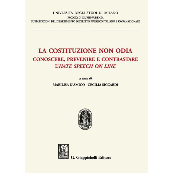 «Questo volume affronta il tema della diffusione dell'odio on line, unendo due prospettive: il lavoro "sul campo" svolto insieme all'Associazione Vox-Osservatorio Italiano sui Diritti e lo studio scientifico condotto nelle aule universitarie; due anime diverse ma profondamente unite dal medesimo obiettivo, quello di promuovere una cultura tollerante, paritaria e fermamente contraria alla diffusione di forme di odio e discriminazione. Per quanto riguarda il lavoro "sul campo", teniamo a ricordare, in premessa a questo volume, le attività dell'associazione Vox-Osservatorio Italiano sui Diritti, grazie alle quali ci siamo avvicinate al tema dello hate-speech on line come studiose. Vox-Osservatorio Italiano sui Diritti è un'associazione senza scopo di lucro, fondata nel 2013 da Marilisa D'Amico (Prorettrice a Legalità , Trasparenza, Parità di Diritti dell'Università degli Studi di Milano), Silvia Brena (Giornalista e direttrice di un'agenzia di comunicazione), Massimo Clara (Avvocato e militante per i diritti civili), con lo scopo di diffondere una cultura attenta ai diritti in Italia. Pochi mesi dopo la fondazione dell'associazione, in un momento storico in cui il tema dell'odio on line non era ancora al centro del dibattito pubblico, i promotori dell'associazione hanno deciso, credendoci fermamente, di procedere al lancio del progetto "La Mappa dell'Intolleranza", replicando e potenziando in Italia la ricerca già svolta dall'Università statunitense Humboldt State University...» (Dall'Introduzione)
