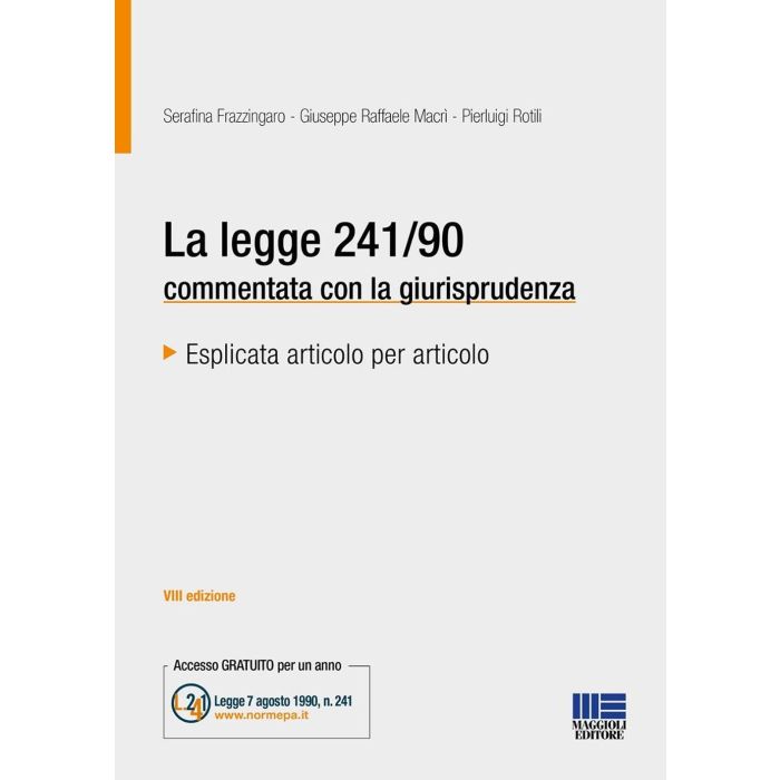 L'VIII edizione del volume conferma che, nonostante innumerevoli discipline di settore intervengano nell'ambito dell'azione amministrativa, la legge 7 agosto 1990, n. 241 mantiene la sua connotazione di legge generale sul procedimento amministrativo che conferisce stabilità e concretezza all'attività della pubblica amministrazione. Tale impostazione consente anche ai cittadini di ritrovare nei rapporti con la pubblica amministrazione principi e valori che rappresentano oramai dei pilastri confermati in ogni settore anche dalla giurisprudenza. I Giudici, infatti, confermano il valore unificante e sistematico della legge n. 241/90 riconoscendo l'importanza trasversale della disciplina dell'azione amministrativa, nonché delle principali tematiche ad essa connesse sotto il profilo tanto organizzativo quanto provvedimentale. Con la presente edizione si rileva come la giurisprudenza abbia assecondato, nelle pronunce, la volontà del legislatore di imprimere al procedimento amministrativo un'accelerazione su tutte le fasi in cui profili valutativi dipendenti da pareri e/o autorizzazioni e/o nulla osta possano determinare delle situazioni stanziali rispetto all'interesse, oggi sempre più significativo, di concludere il procedimento amministrativo nei tempi di legge. Appare evidente come nel complesso tutte le misure in atto non abbiano solo lo scopo di semplificare l'azione della pubblica amministrazione, ma siano strumenti di maggiore garanzia del privato nell'ambito del procedimento amministrativo. Il volume mantiene la consueta struttura, con la suddivisione articolo per articolo e la giurisprudenza ordinata per argomento all'interno dei singoli articoli, confermando così le sue caratteristiche di facile e immediata consultazione. La raccolta giurisprudenziale è aggiornata al mese di settembre 2024, al fine di fornire all'operatore e ai singoli cittadini uno strumento che sia il più completo possibile e che possa essere di ausilio nei (non sempre agevoli) rapporti con la pubblica amministrazione.