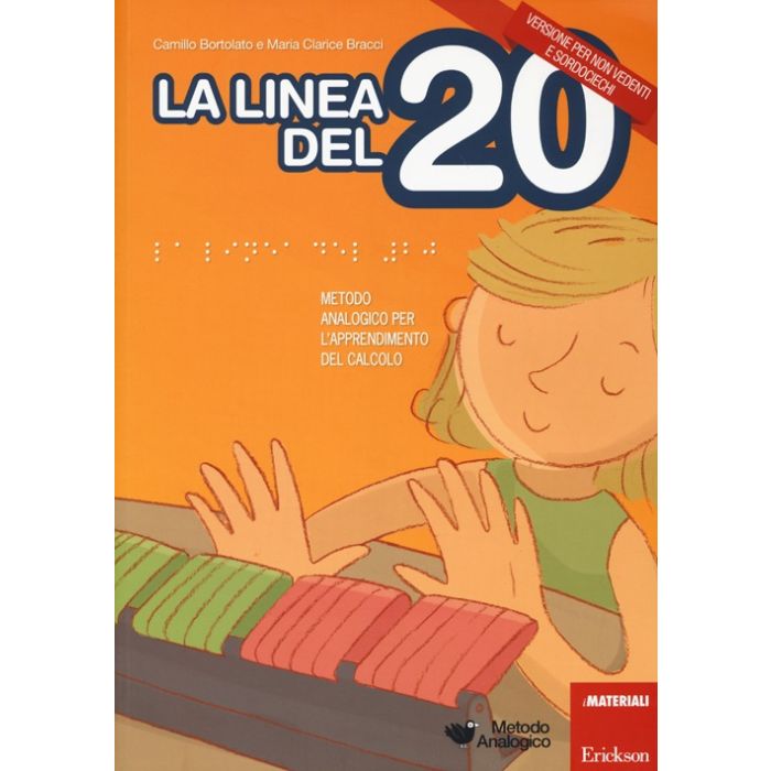 La linea del 20 - in questa edizione pensata appositamente per alunni non vedenti e sordociechi - è lo strumento più efficace per apprendere i numeri e il calcolo, poiché valorizza le capacità intuitive di ciascun bambino, che nasce con una spiccata propensione verso il calcolo di numerosità. Applicabile nella scuola primaria e nelle attività di preparazione svolte nella scuola dell'infanzia, consente di operare direttamente entro il 20 svolgendo da subito addizioni e sottrazioni che sono operazioni. Nella guida - per l'insegnante, l'educatore, il genitore - viene presentato l'itinerario didattico completo di classe prima, per permettere al bambino non vedente o sordocieco di svolgere il programma contemporaneamente al resto della classe. Il percorso comprende esercizi con le schede in Braille e lo strumento della linea del 20 e integra le attività con l'utilizzo dei sussidi tiflodidattici. Lo strumento in plastica è corredato di un discriminatore tattile per facilitare l'individuazione della seconda decina come un secondo paio di mani. L'apprendimento giunge immediato perché le mani sono lo strumento naturale che ha permesso l'evoluzione del calcolo mentale. Le schede operative riportano: i numeri da 1 a 10 in Braille, in scrittura comune e a caratteri ingranditi per gli alunni ipovedenti con le palline in rilievo e con elevato contrasto cromatico; rappresentazioni grafiche della linea del 20, del 100 e del 1000 con le palline in rilievo per la "lettura" tattile delle quantità.