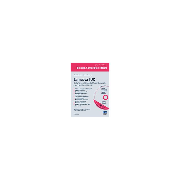 un tema di enorme attualità. In Appendice – oltre ad un’utilissima tabella riassuntiva ed alla normativa di settore – sono stati inseriti alcuni schemi e modelli (Regolamento comunale sulla IUC – Dichiarazione e denuncia del contribuente ai fini IUC – Ricorso alla Commissione Tributaria Provinciale), riportati anche sull’allegato Cd-Rom, per consentirne la compilazione personalizzata e la stampa.