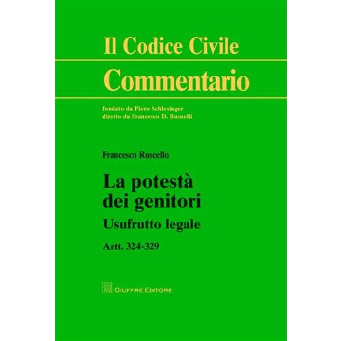 L'opera offre un commento critico degli artt. 324-329 c.c. dedicati all'usufrutto legale, nel contesto più ampio della potestà genitoriale. L'analisi del quadro normativo attuale, dopo la riforma del diritto di famiglia del '75, mette in luce le contraddizioni tra il fondamento in prevalenza patrimonialistico dell'istituto collegato alla potestà dei genitori e al relativo potere di amministrazione e le istanze di natura personale che ne caratterizzano la disciplina. L'autore esamina caratteristiche e funzioni dell'usufrutto legale contestualizzandolo nell'ambito della crisi coniugale, mettendone in rilievo limiti, applicazioni e prospettive di riforma soprattutto dopo la legge n. 54/2006 sull'affido condiviso.
