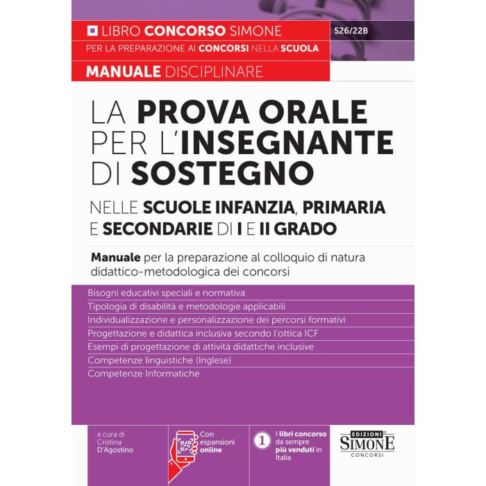 La prova orale per l'insegnante di sostegno nelle scuole infanzia, primaria e secondaria di I e di II grado. Manuale per la preparazione al colloquio di natura didattico-metodologica dei concorsi. Con espansione online