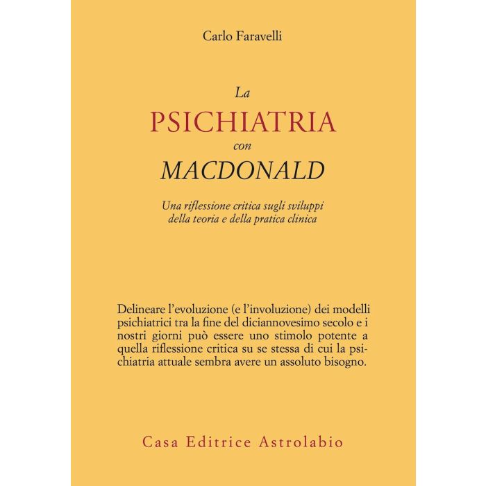 L'autore ha attraversato nella sua lunga attività clinica, di ricerca e di didattica un periodo di repentine trasformazioni dei concetti e delle pratiche psichiatriche che ha configurato un'autentica rivoluzione di tutti i parametri clinici e teorici della disciplina. È stato uno degli ultimi psichiatri a essersi formato sulla psichiatria precedente il DSM-III, ha potuto lavorare fianco a fianco con colleghi più? anziani che avevano vissuto in prima persona l'ingresso degli psicofarmaci nei manicomi e osservato i mutamenti che ne erano derivati, ha conosciuto il lavoro nei manicomi prima della legge 180, ha interagito in prima persona con gli esponenti più? rappresentativi della psichiatria mondiale, ed è stato professionalmente presente e attivo in tutti i sostanziali cambiamenti della disciplina degli ultimi cinquant'anni. Proprio nell'attività dell'insegnamento per la specializzazione ha constatato con sorpresa che i giovani colleghi di recentissima formazione sembravano vivere una psichiatria dell'oggi senza alcun riferimento allo ieri, una destoricizzazione totale, in cui le nozioni e le convenzioni odierne venivano accettate senza alcun tentativo di approfondimento critico, o almeno di inquadramento storico. Ha avvertito dunque la necessità di tramandare un po' della sua esperienza per non lasciar cadere il divenire della materia psichiatrica nell'oblio totale, e per far sì che i giovani psichiatri non perdano le radici della professione e le usino per riflettere in misura più critica sulla loro pratica. Il fulcro di questa complessa storia evolutiva della psichiatria è il passaggio epocale da una tradizione di medici-filosofi finissimi osservatori e narratori, ma lontani dall'uniformità clinica e diagnostica, a una psichiatria fatta di crocette sui questionari, ben stabilita, riproducibile, facilmente accessibile e comprensibile, ma straordinariamente povera di costrutti epistemologici, oltre che di profondità psicopatologica. Nel mezzo, come elemento unificante, vero artefice di entrambi i cambiamenti, l'ingresso sempre più massiccio del mercato, dell'interesse economico, teso ad allargare quanto più possibile il plateau dei fruitori di qualsiasi prodotto commercializzabile. Questa la traccia di una narrazione tanto avvincente quanto precisa, tanto vissuta personalmente quanto rigorosamente oggettiva. E Macdonald? (o, forse, McDonald?) Il lettore lo scoprirà ben presto, sin dalle prime pagine.