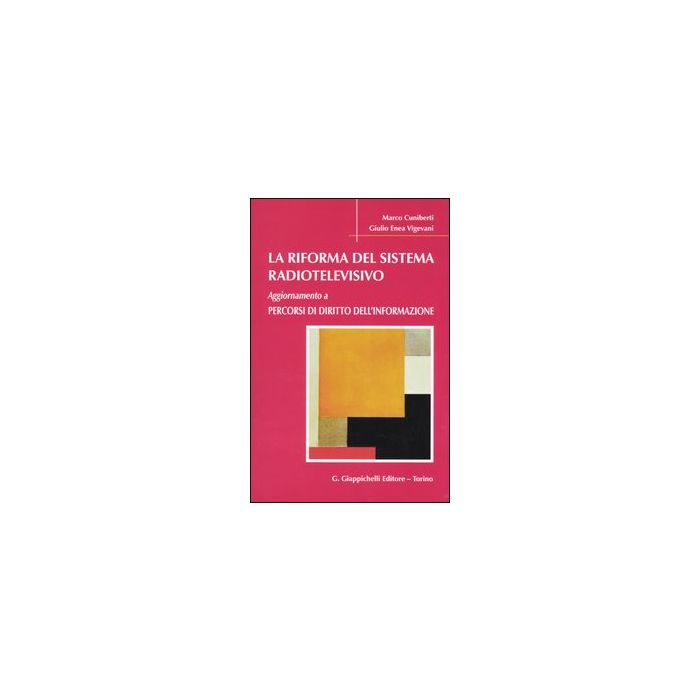 Il volume presenta la riforma del sistema radiotelevisivo e si configura come un aggiornamento a "Percorsi di diritto dell'informazione", della stessa casa editrice. Marco Cuniberti insegna "Diritto pubblico dell'informazione e dell'informatica" nella facoltà di Giurisprudenza dell'Università degli Studi di Milano. Giulio Enea Vigevani insegna "Diritto dell'informazione e della comunicazione" nella facoltà di Giurisprudenza dell'Università degli Studi di Milano - Bicocca.