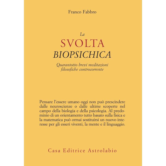 I temi trattati in questo saggio breve ma denso di contenuti significativi per lo scienziato, per il filosofo e per chiunque oggi si occupi in qualche modo dell'essere umano, mirano a una ridefinizione generale degli ordinamenti che riguardano gli esseri viventi (cos'è un organismo, la psiche, il linguaggio, la comunicazione e la cultura), giungendo a trattare anche del tempo, della scienza e delle leggi che regolano la materia e l'energia. Dopo aver messo in luce l'ormai imprescindibile rilievo delle neuroscienze, della biologia e della psicologia per qualsiasi seria riflessione sugli esseri umani e la loro convivenza all'interno della società, vengono affrontati argomenti come la libertà, la religione, il male, la violenza, la politica e la democrazia, quest'ultima auspicata in una forma più diretta e simile all'esperienza greca antica, rispetto all'attuale applicazione dei moderni stati nazionali o sovranazionali. La svolta biopsichica dovrebbe insomma riorientare il pensiero sull'uomo dal paradigma fisico-matematico, che ha dominato la filosofia da Galileo in poi, a uno che indaghi primariamente gli esseri viventi: la scoperta ancora sottovalutata del DNA e del codice genetico rivela che la vita si basa su un sistema simbolico di informazioni, e se adeguatamente compresa produrrà la spinta a compiere questo fondamentale passaggio della filosofia.