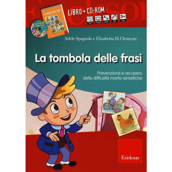 Il CD-ROM: La tombola delle frasi propone una vasta raccolta di materiali linguistici che permette di sollecitare nei bambini dai 3 anni in poi la comprensione e la produzione di tutte le frasi della lingua italiana attraverso la generalizzazione di un numero limitato di strutture. Giocando a tombola con il simpatico prestigiatore Sammy, l'alunno si divertirà a costruire frasi partendo da quelle più semplici (con struttura soggetto/verbo) fino ad arrivare a quelle più complesse (con complementi diretti, indiretti e verbi riflessivi). Le 120 frasi proposte durante il percorso didattico sono organizzate in 5 sezioni operative a seconda della loro complessità. Ogni tipologia di frase è rappresentata da 24 carte illustrate, con testo e con lettura vocale a seconda delle impostazioni di gioco settate. Completa il programma la sezione "Materiali stampabili" in cui sono raccolte tutte le carte della tombola in formato .PDF che potranno essere stampate e ritagliate. Il software è un percorso linguistico facilmente personalizzabile a seconda delle specifiche difficoltà dei bambini e particolarmente utile per logopedisti, educatori dell'asilo nido, insegnanti della scuola dell'infanzia e della scuola primaria. È inoltre un valido strumento anche per i genitori che potranno giocare con i loro bambini, unendo al divertimento un efficace stimolo per lo sviluppo linguistico.