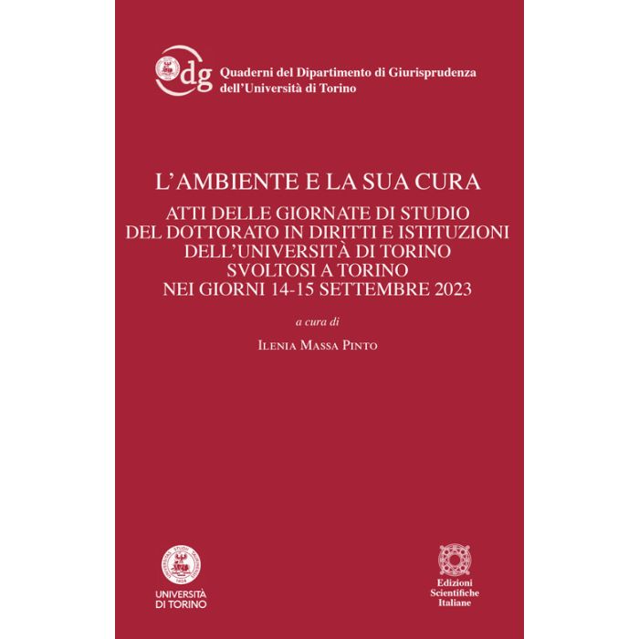 Il volume raccoglie gli atti delle Giornate di Studio (14-15 settembre 2023) dedicate al tema "L'ambiente e la sua cura" e organizzate nell'ambito dell'offerta formativa del corso di Dottorato in Diritti e Istituzioni dell'Università di Torino - XXXVIII ciclo -, con l'obiettivo di riflettere, in una prospettiva interdisciplinare, su una sfida epocale che coinvolge poteri pubblici, comunità scientifiche e società civile.